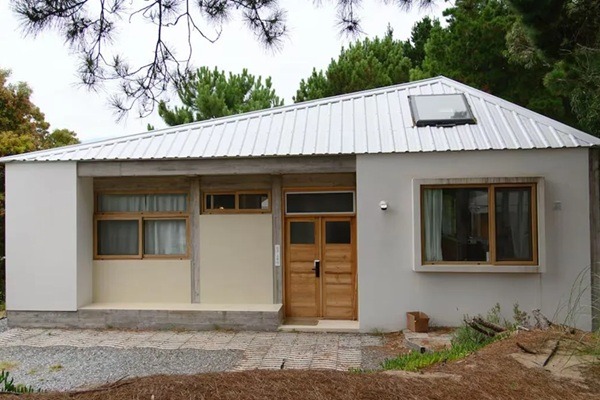 En la adaptación realizada en Argentina, la estructura se encuentra elevada sobre pilotes, lo que ayuda a protegerla de la humedad del suelo y mejora la ventilación natural. La casa incluye dos dormitorios y una sala de té, un espacio pensado para el descanso y la contemplación, elementos característicos de la cultura habitacional coreana.