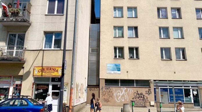 La estructura, oficialmente conocida como Casa Keret, fue diseñada por el arquitecto polaco Jakub Szczęsny. El proyecto surgió a partir de un intersticio urbano que durante años fue considerado inutilizable: un vacío estrecho entre una edificación de la posguerra y una torre de departamentos moderna. Lejos de descartarlo, el arquitecto decidió transformarlo en una instalación artística habitable, con una fuerte carga simbólica y funcional.